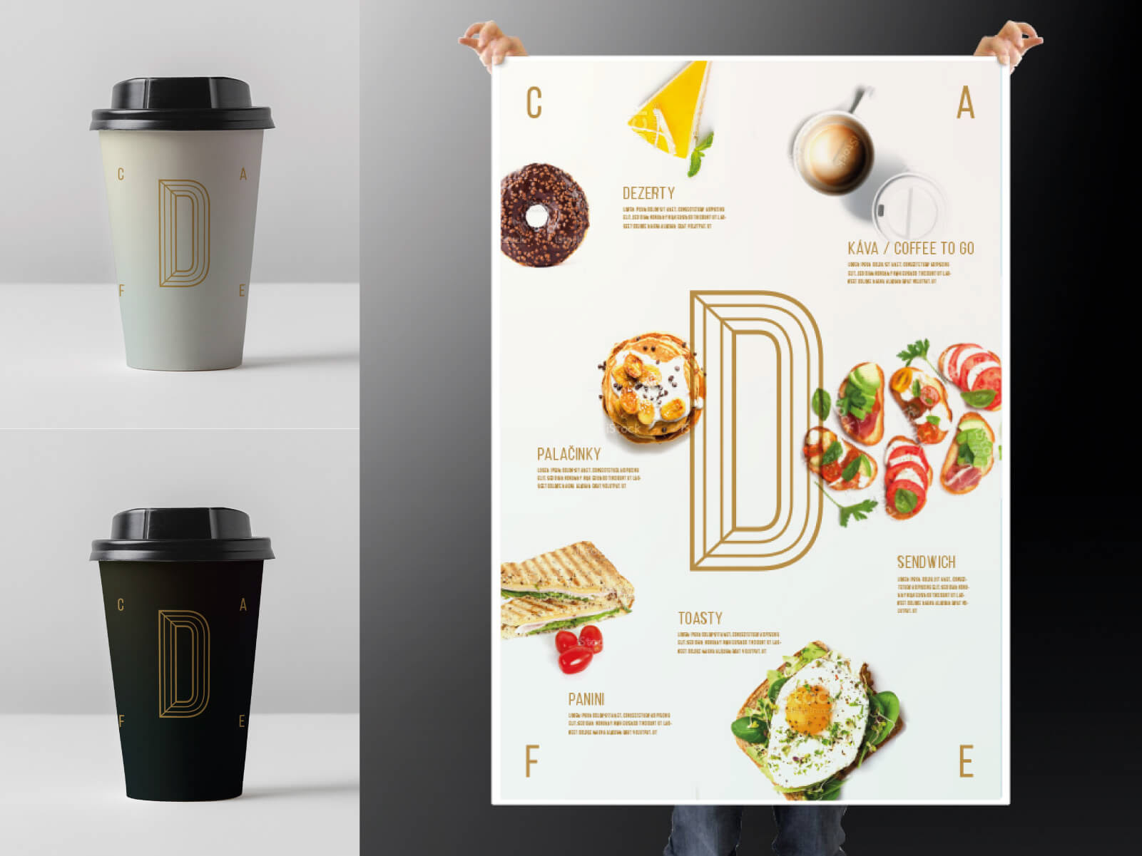 Návrh loga a vizuální podoba brněnské kavárny vycházející z unikátní historizující podoby stropu v interiéru.