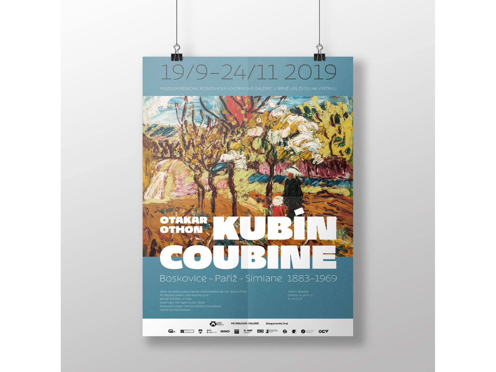 Grafická podoba výstavy k 50. výročí úmrtí boskovického rodáka, malíře Otakara Kubína, pořádaná Moravskou galerií společně s Muzeem Boskovicka (katalog, plakát k výstavě, tiráž výstavy)